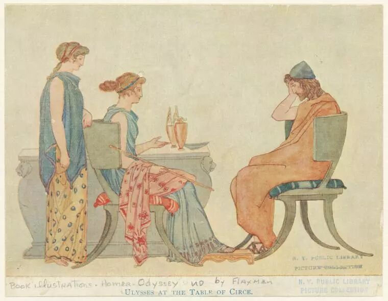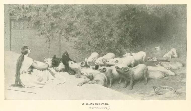 奥德修斯漂流到Aeaea岛,这里居住着太阳神的女儿瑟西(Circe)。瑟西以美酒、蜂蜜和奶酪招待前来打探的奥德修斯手下,并用魔法把他们都变成了猪。