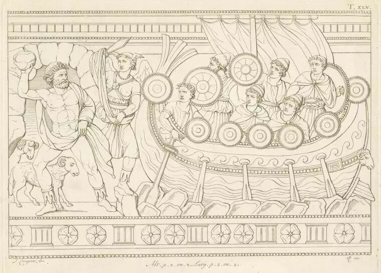 独眼巨人Cyclopes正是海神波塞冬的儿子,奥德修斯灌醉并刺瞎他的独眼才得以逃生。
