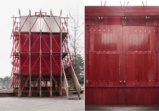 如同在设计训练中强调试错、均衡熟悉与陌生内容的比例,建筑工房对于教学法的设计也强调同样的思路,教学法的设计也与方案的设计一样,可经由同样的逻辑得到迭代。一个值得一提的例子是瑞士苏黎世联邦理工大学(ETH Zürich)现任教授汤姆·艾默生(Tom Emerson)在2012年秋季的设计课的前四周同样也开设了单项训练,将一间约翰·索恩(John Soane)博物馆的藏画厅转译为一座临时的小型户外展亭期间。20组共40名学员在首日进行了草案快速设计,并与教授一道集体横向票选出优胜方案即刻开始深化。此后40名学员分别进入方案深化、结构优化、构造设计、施工管理、工具管理、物流管理、展陈设计、灯光、后勤、运营等工作小组。以一个临时建筑的搭建为契机,这项训练模拟了一整个工程中参与团队的全息构成。而在方案的设计中,学生与结构教研组、构造教研组充分讨论,将脚手架这一建造中的要素融合进入设计本身;而对经典历史案例的深读,也成为当代化空间与构造语言的转译;而因为建造材料的供给限定为去年搭建课题用材回收的旧木料,构造表达的设计也令学生以实操中直观体验的方式理解了“匠人式拼补” (bricolage)的理论;同时,大规模团队合作下每个个体积极参与项目推进的方式也是对管理沟通技能的宝贵训练 。