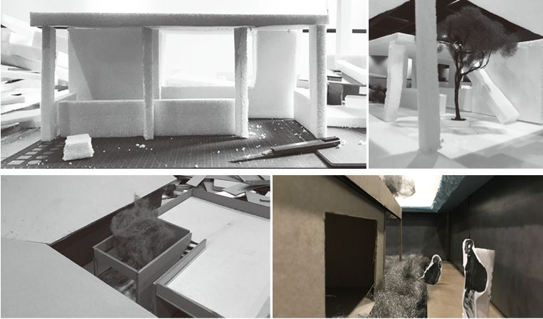 除了以模型为工具进行的设计训练,摄影作为一种特殊的直观体验方式也得到了平行的训练 。于模型而言,摄影是让相机替代眼睛而令身体得以进入模型世界的一种方法。对于视野、视高、站点等,课程中都给出了非常具体的指引。学生在设计的过程中,除了使用裸眼观看,也通过摄影记录和观察方案在推演过程中的各个状态。此外,建筑师在操作模型时的状态是一种类似上帝视角的第三者观察方式,而在摄影中模拟人视角的时候,则将身体投射进入第一人称的位置。两种观看方式的切换,促使受训者跨越设计操作和具体效果之间的想象鸿沟。相片在创造置身其中视知觉条件的同时,迫使建筑师对空间中的光照、材料、构造细部等有更为具体的设计考察,也意味着建筑师将设计想法落实为设计操作后,可迅速获得综合效果的预判反馈,并建立起从抽象观念到实际效果预判的直观经验。