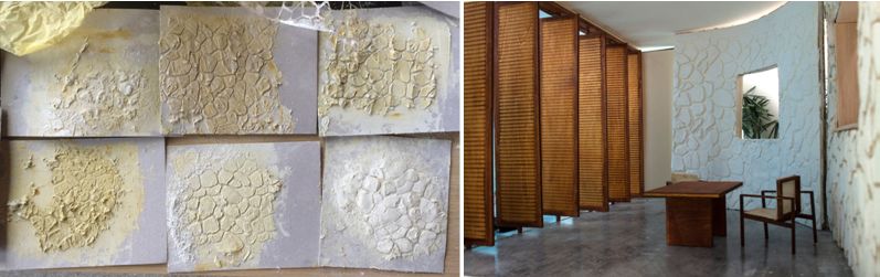 左图:虎皮石墙模型试样 右图:书斋空间中的虎皮石墙
