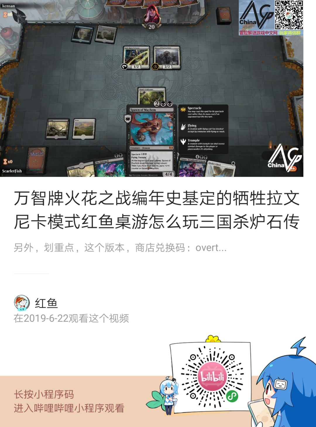 1、识别下面哔哩哔哩小程序码,立即观看Ravnica模式视频