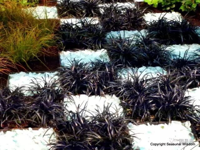 3、边缘处理。选择好镶边材料有利于花境种植区的维护工作,可以选择塑料、金属材料、石材、砖这类材料做镶边。镶边可以防止周围杂草或其它植物入侵。如果种植区位于草坪中,可以切割出一条线状边带,用6到12英寸宽的砖石或石头铺砌。